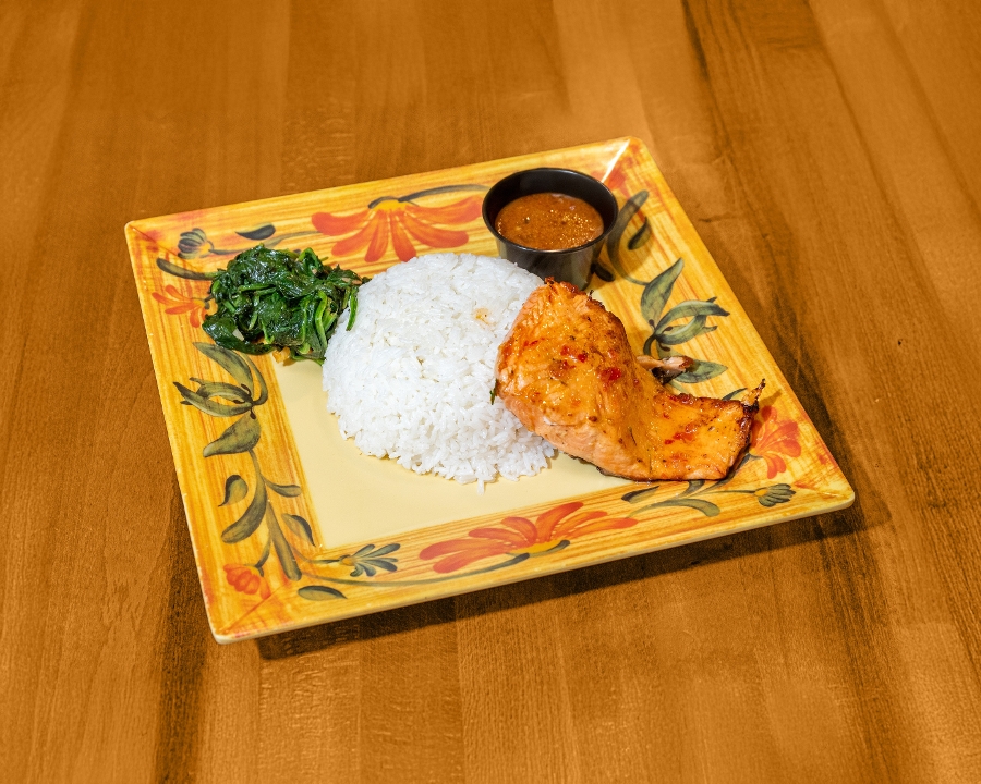 Sweet Thai chili sauce, rice, garlicky spinach